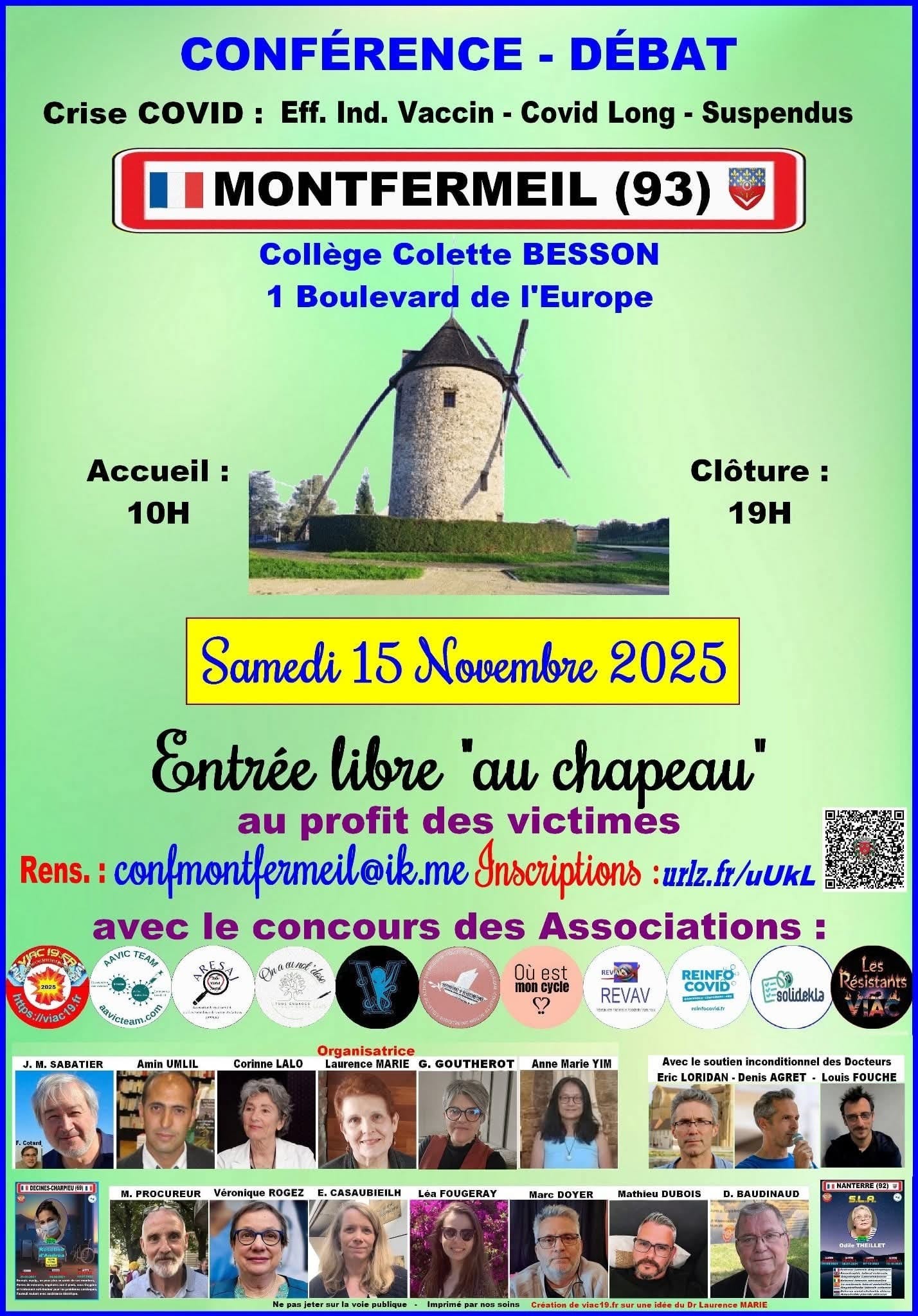 Les associations et collectifs Viac19, Aavic Team, Aresaj, On a eu not’dose, Verity France, Où est mon cycle, Revav,Réinfocovid.fr, Solidekla, Les résistants Viac œuvrant pour la reconnaissance et le soutien médical des victimes d’effets indésirables post-injection Covid et des malades du Covid long seront présents. Cette journée est placée sous le signe du témoignage, de l’humanité et de l’unité.