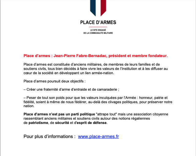11 novembre 2022 : Communiqué de Presse de Place d’Armes