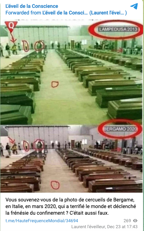 Traduction du titre ci-dessus : Le « canular » avec la photo des cercueils à Bergame