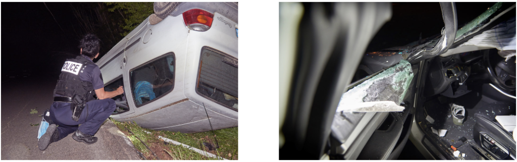 C’était une intervention a priori banale, un simple feu de poubelle dans le parking extérieur d’une résidence. Ils étaient arrivés sur les lieux avant les pompiers et avaient immédiatement constaté qu’il ne s’agissait pas d’une benne à ordures incendiée, mais d’une voiture fumante suite à un choc contre un muret.