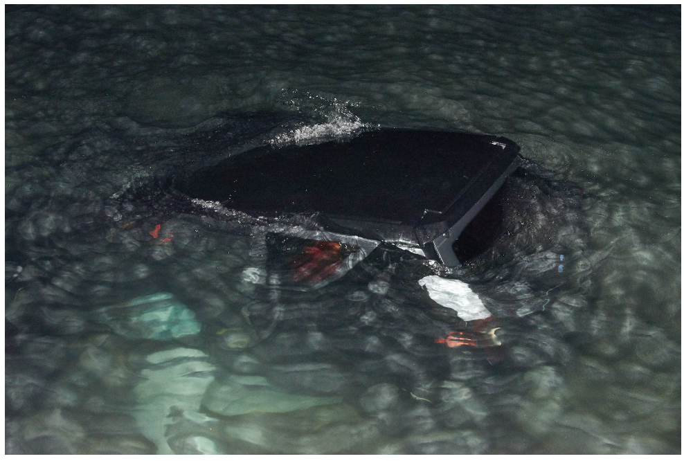 Tous trois s’élancèrent vers l’emplacement où la voiture était en train de couler. Les feux projetaient encore une faible lueur sous l’eau et des reflets bleutés dansaient tout autour.
