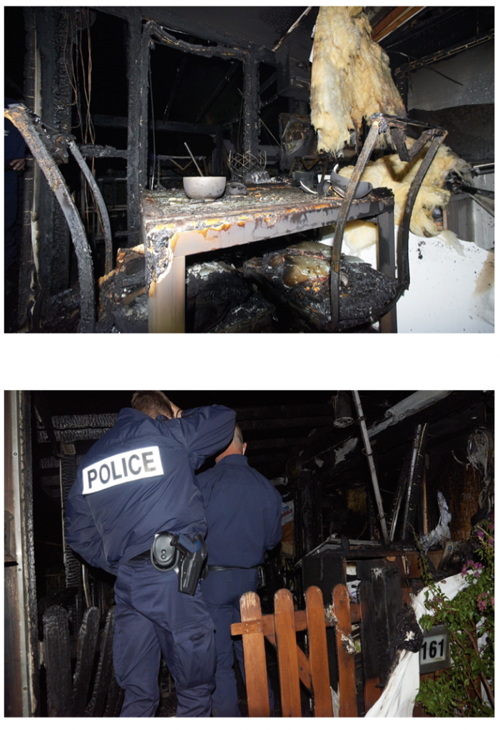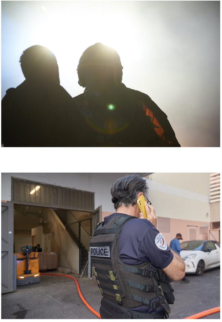 Les policiers et pompiers étaient arrivés sur place en même temps. Ils descendaient ensemble un étroit escalier de pierre polie donnant accès à la cour de la résidence. L’Allée du Jasmin, derrière le bâtiment Tourterelle, avait indiqué le CIC. Un homme tomba d’une fenêtre, celle du requérant. Blessure au dos. Les rangers et bottes des intervenants crissaient sur le gravier, leurs ombres chargées de matériel de secours s’étiraient sur la façade immaculée de l’immeuble. Ils dépassèrent le hall d’entrée ; un gardien piquait du nez derrière son comptoir. À moitié dissimulés par un bloc de buissons taillés à la perfection, de petits jardins privés baignaient dans la lumière chaleureuse tombant des portes-fenêtres. Le chant des grillons se mêlait au rythme tranquille de l’arrosage automatique.