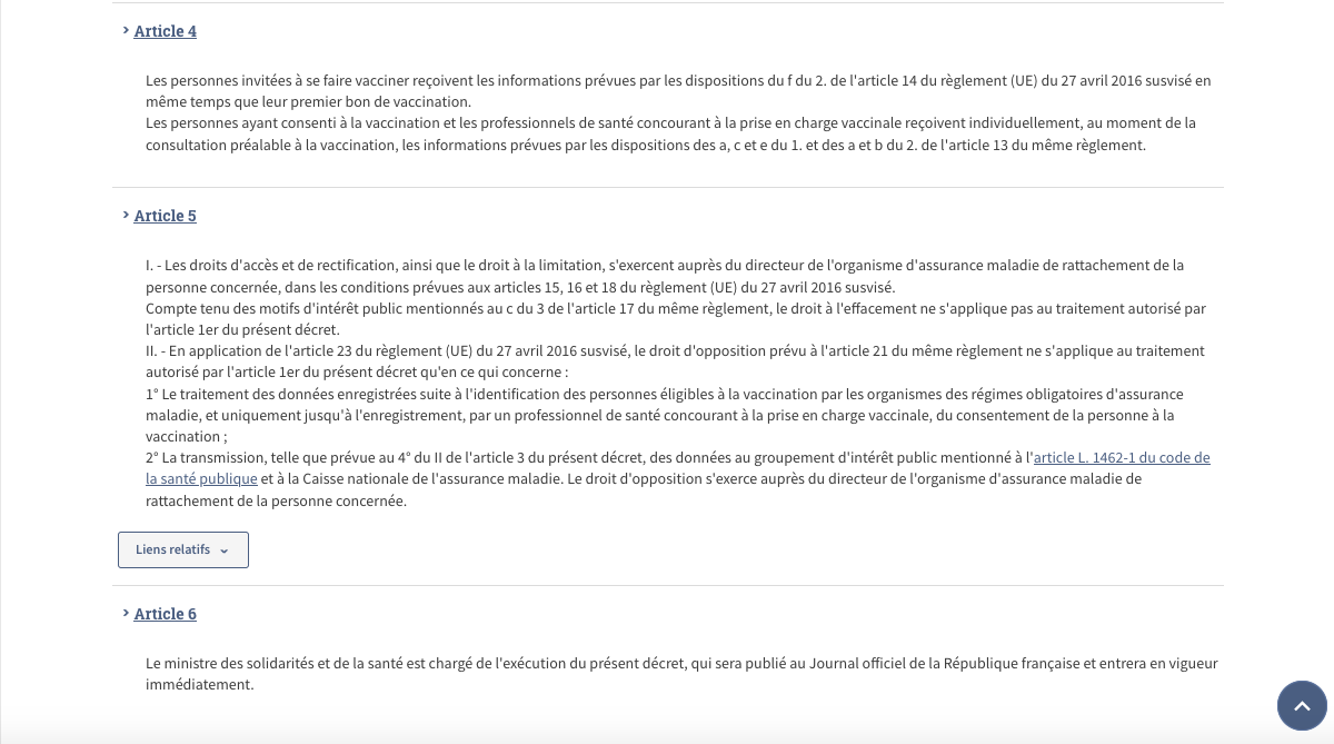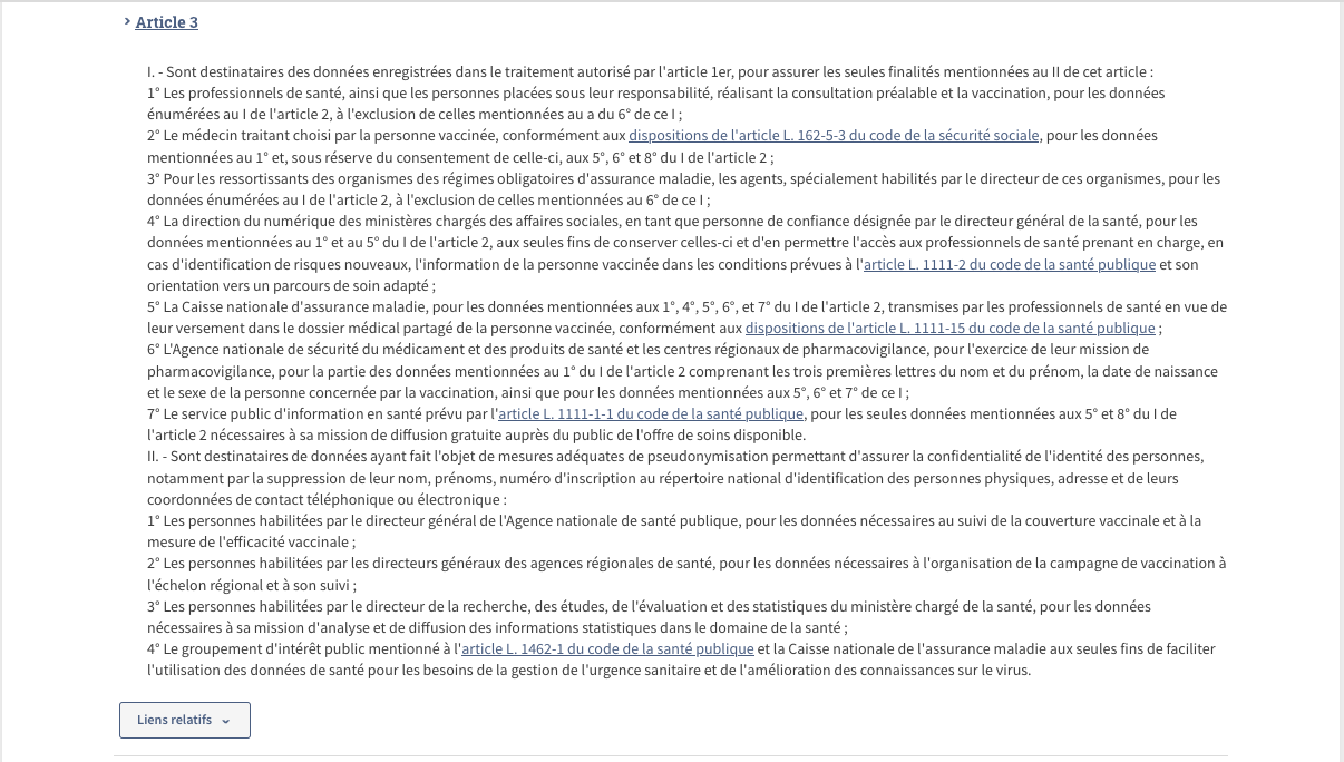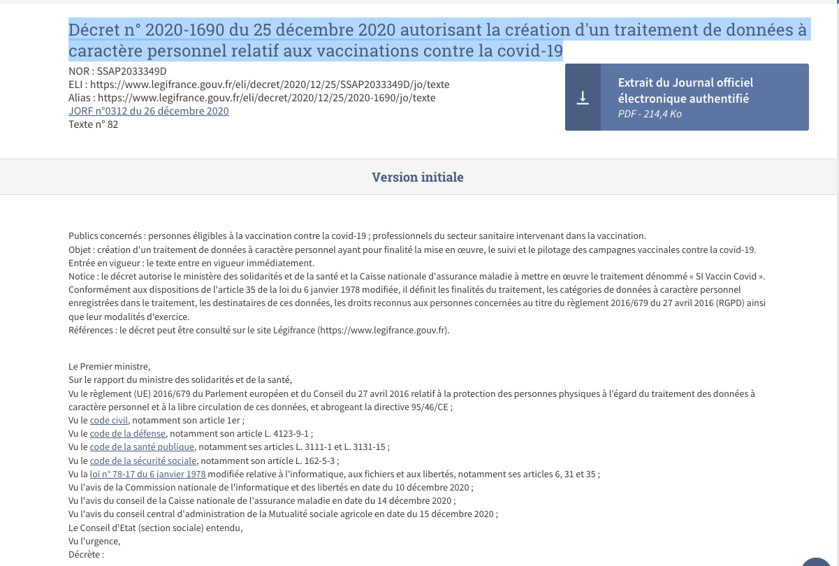 › Décret n° 2020-1690 du 25 décembre 2020 autorisant la création d’un traitement de données à caractère personnel relatif aux vaccinations contre la covid-19