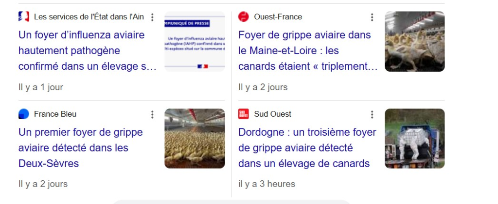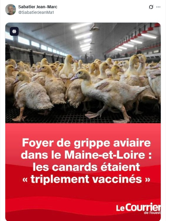 Depuis un an j’ai renoncé au foie gras mi cuit et au magret de canard piqués à l’ARN m . Le sabotage de la filière par l’Etat ne sert à rien . Comme prévu et comme les essais l’avaient démontré les vaccins sont totalement inefficaces et dangereux . Les foyers d’infection se multiplient même chez les canards triplement injectés