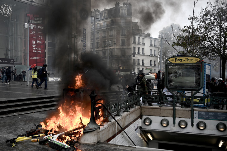La Place d’Italie à Paris actuellement tenue par les casseurs : c’est tout ce que retiennent les médias de l’anniversaire des Gilets jaunes