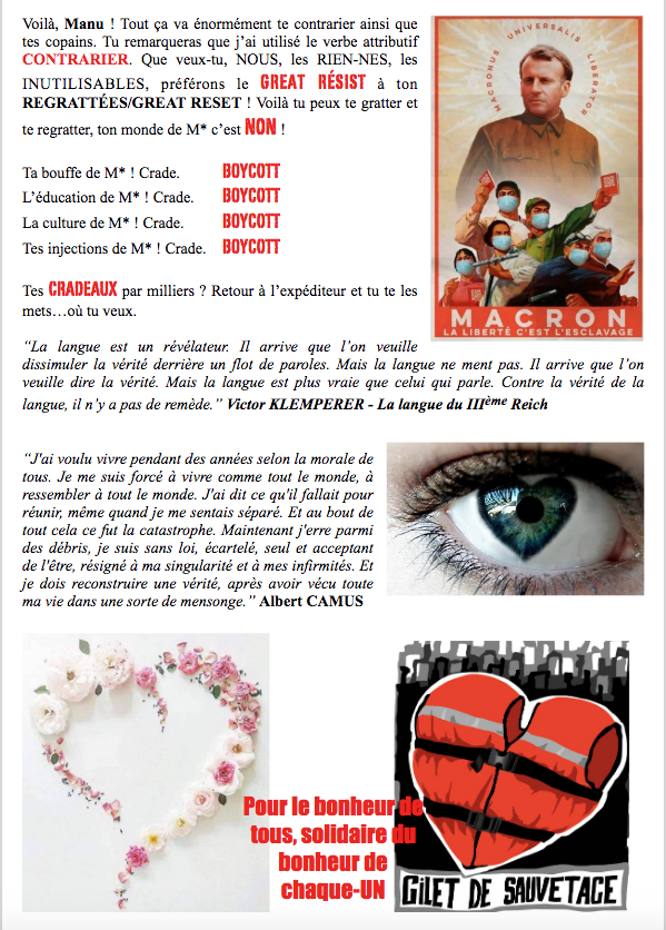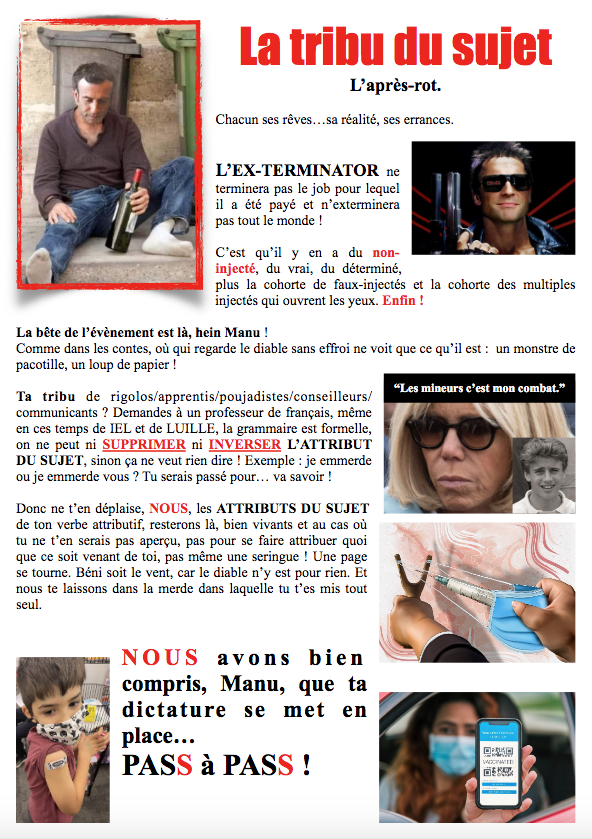 Avec la « Tribu » de ceux qui ont plaisir à le lire, que ce soit « Il » ou « Elle » ou « IEL », peu importe, nous sommes tous appelés à la réflexion de ce que nous sommes et surtout de ce que « l’on » voudrait que nous soyons.