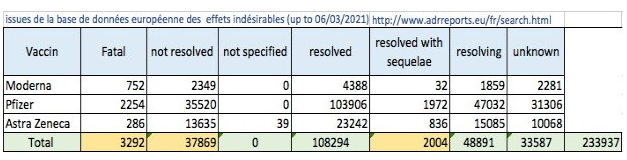 Pour mémoire et pour comparaison, vous trouverez ci-dessous le tableau des effets secondaires établis au 6 mars.