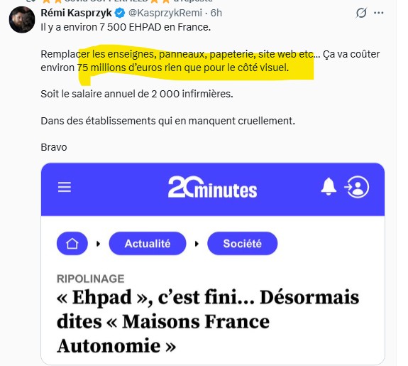 Letordu et son gouvernement gaspillent le salaire annuel de 2 000 infirmières pour changer le nom des Ehpad en Maisons France Autonomie