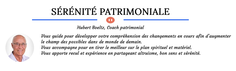 Pour avoir le recul et les idées claires afin de développer au mieux son patrimoine matériel, il m’apparait indispensable de commencer par s’occuper de son patrimoine humain. De « sortir » du climat psychologique ambiant fait de peurs, souvent irraisonnées, et aussi d’agir.