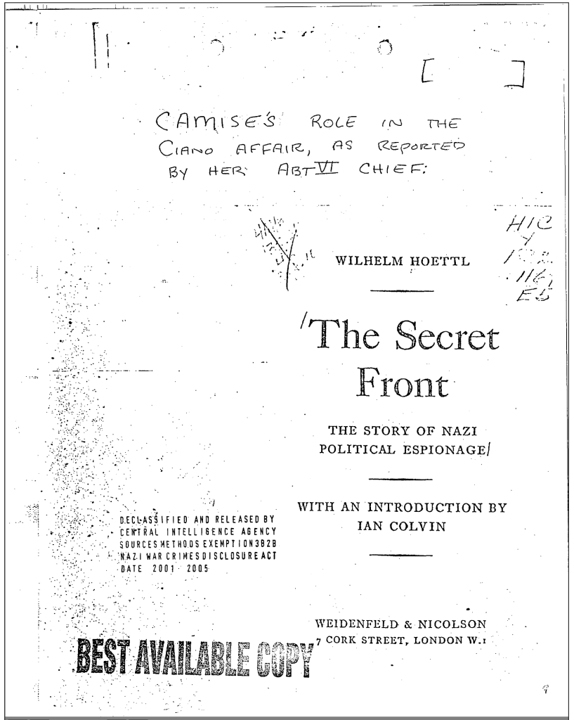 L’officier de la Gestapo Heinrich Pfeifer a fui l’Allemagne nazie pour l’Angleterre et y a écrit ses mémoires, Hinter den Kulissen des 3. Reiches, « Dans les coulisses du Troisième Reich ».