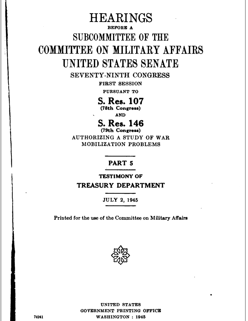Témoignage du Département du Trésor sur l’élimination des ressources de guerre allemandes