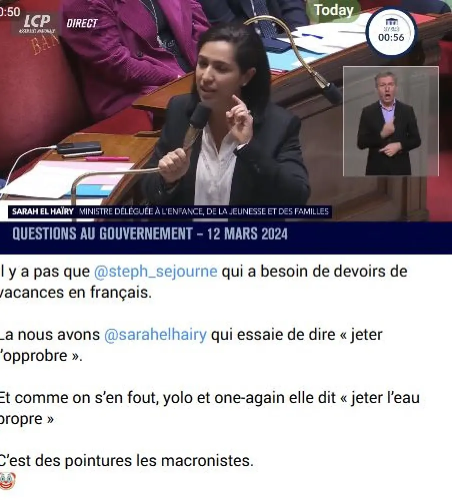 Elle ne connaît pas l’expression jeter l’opprobre sur quelqu’un. Ce n’est pourtant pas la plus ignare des ministres macroniens, elle a une licence de droit. Comme quoi ni le bac ni la licence, actuellement, ne garantissent un niveau correct en français…