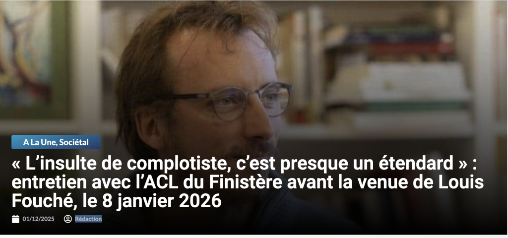 « L’insulte de complotiste, c’est presque un étendard » : entretien avec l’ACL du Finistère avant la venue de Louis Fouché, le 8 janvier 2026