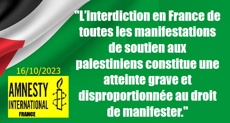 « L’interdiction en France de toutes les manifestations de soutien aux palestiniens constitue une atteinte grave et disproportionnée au droit de manifester.