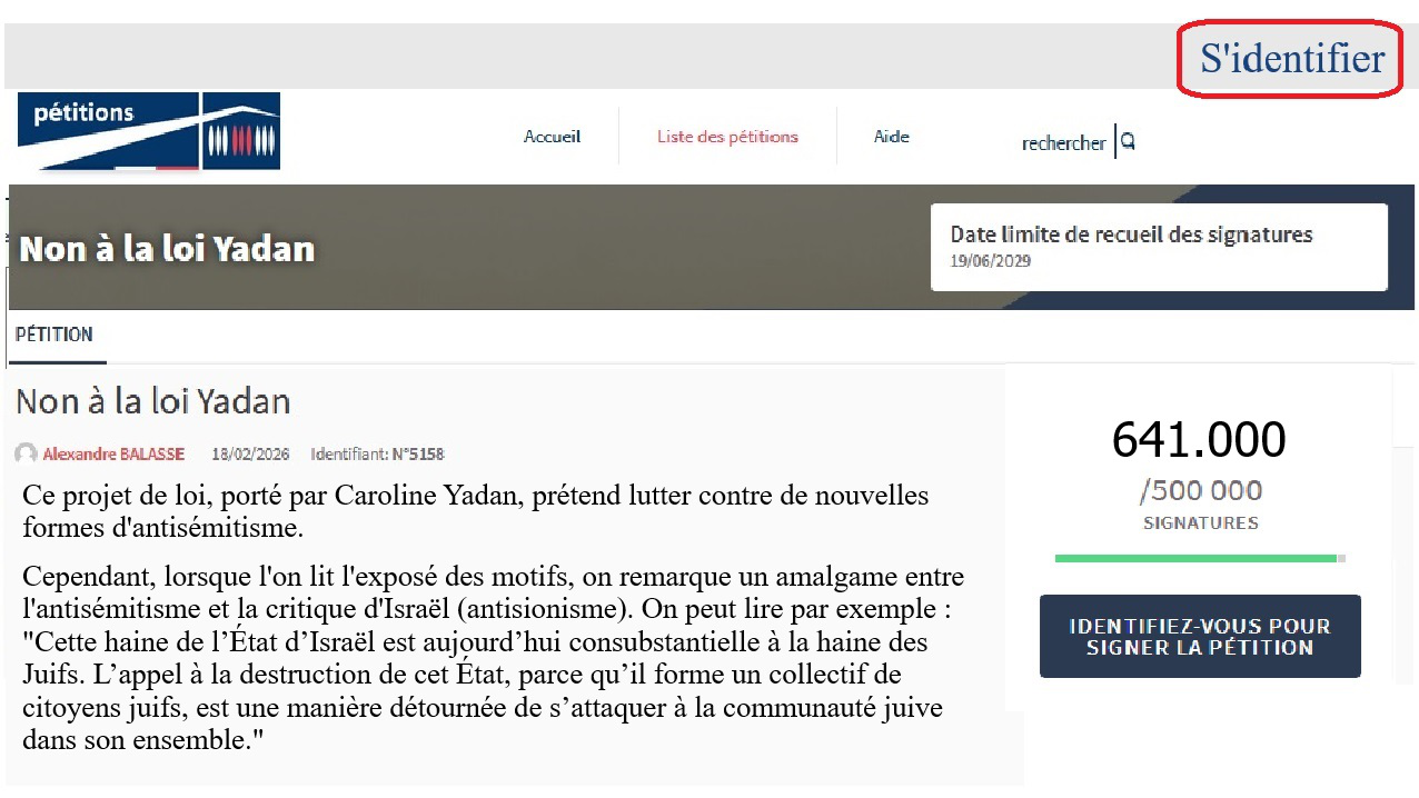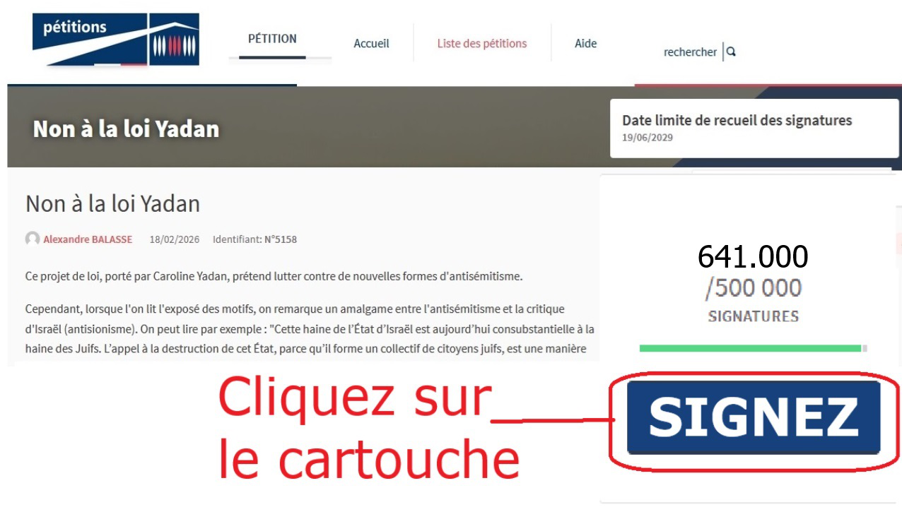 La pétition rédigée et déposée en février 2026 par le citoyen Alexandre Balasse, contre la proposition de loi n°575 de la députée Caroline Yadan, a aujourd’hui recueilli 640 000 signatures. Que contient-elle et comment faire concrètement pour la signer sur le site de l’Assemblée nationale jusqu’au 19 juin 2026 ?
