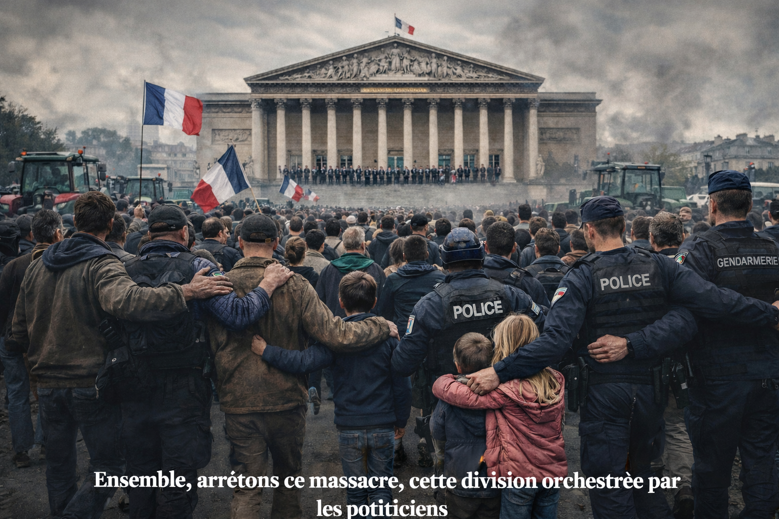 Aujourd’hui, face à la situation dramatique des agriculteurs, face aux accords commerciaux imposés, face à la perte de souveraineté, face à l’injustice sociale généralisée, une évidence s’impose : le peuple et les forces publiques ont le même adversaire. Ce ne sont ni les paysans, ni les policiers, ni les gendarmes, ni les citoyens ordinaires. Ce sont des politiques devenues prédatrices, qui sacrifient la Nation pour des intérêts idéologiques, financiers ou supranationaux.
