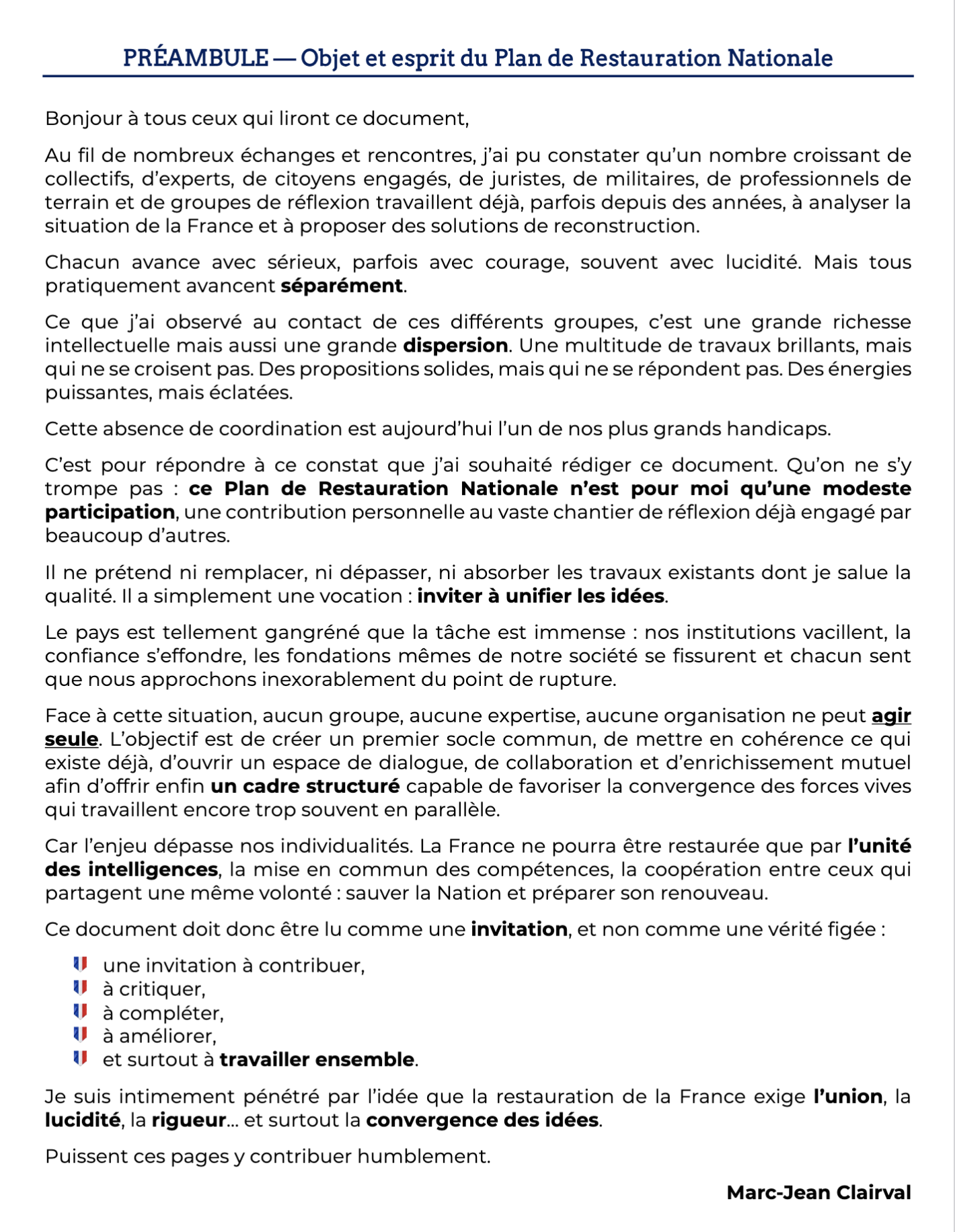 Vous êtes ici: Accueil › Actualités › Plan de restauration nationale ← De S. Freud à C. G. Jung Lancement de MEHA, OMS, injections expérimentales, médecine, éthique & santé | Pr Christian Perronne → Plan de restauration nationale Vue(s) : 1 512 3 phases pour rebâtir la France Plan de Restauration Nationale V2 – 18.11.2025Télécharger MJC : co*****@******************ne.com Laisser un commentaire Annuler la réponseVotre adresse e-mail ne sera pas publiée. Les champs obligatoires sont indiqués avec *Commentaire * E-mail * Nom * Enregistrer mon nom, mon e-mail et mon site dans le navigateur pour mon prochain commentaire.