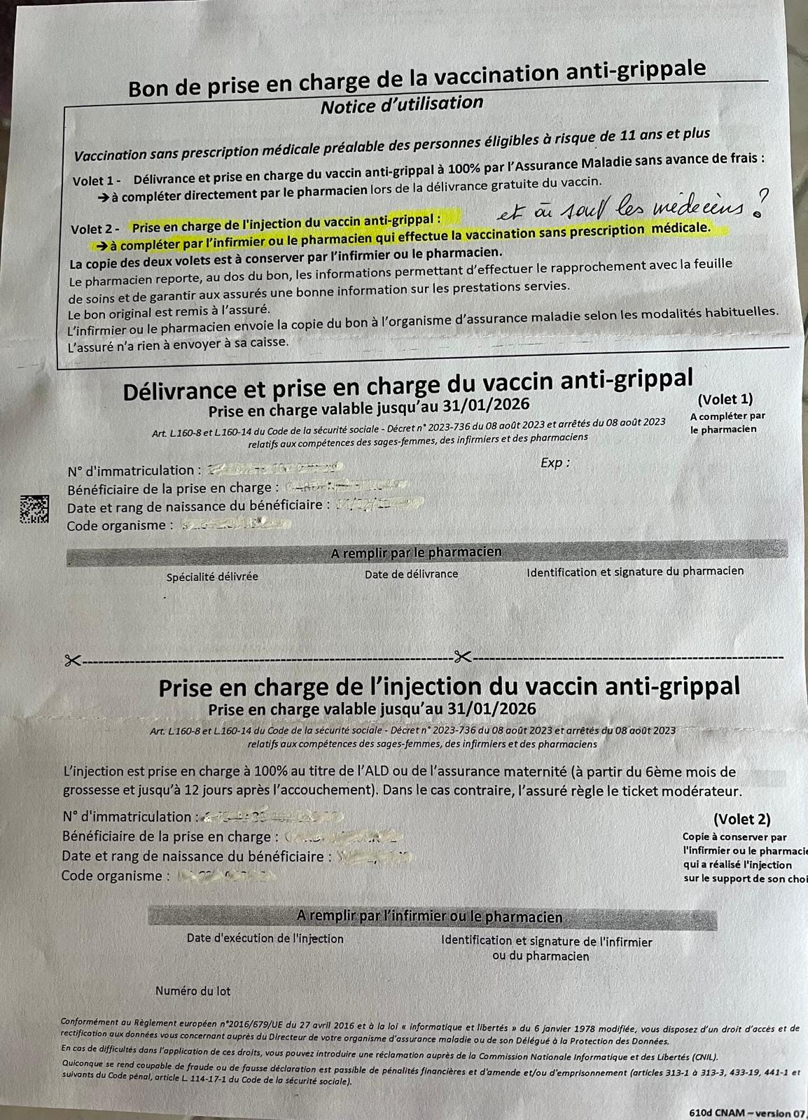 Courrier de la CPAM adressé à un assuré social pour la vaccination anti grippe :