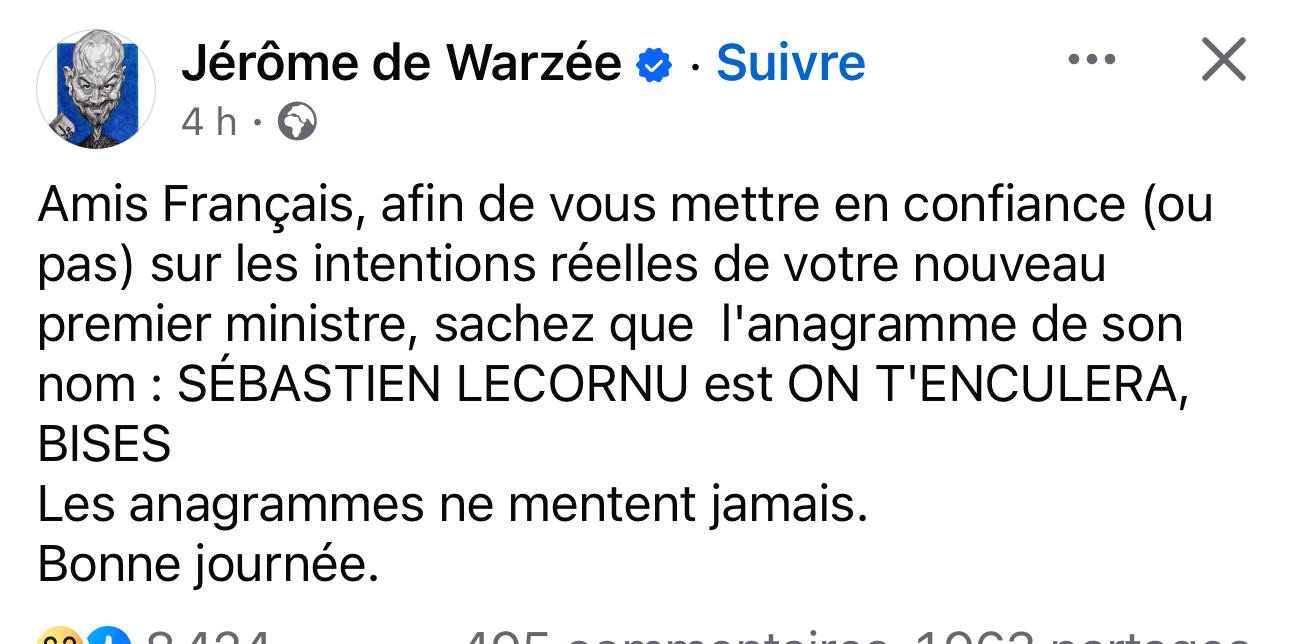 J’ai trahi François Fillon, démantelé Fessenheim, je veux la guerre, je suis l’homme des lobbies éoliens, je suis le copain de Benalla, de Belattar, je suis Sébastien Lecornu