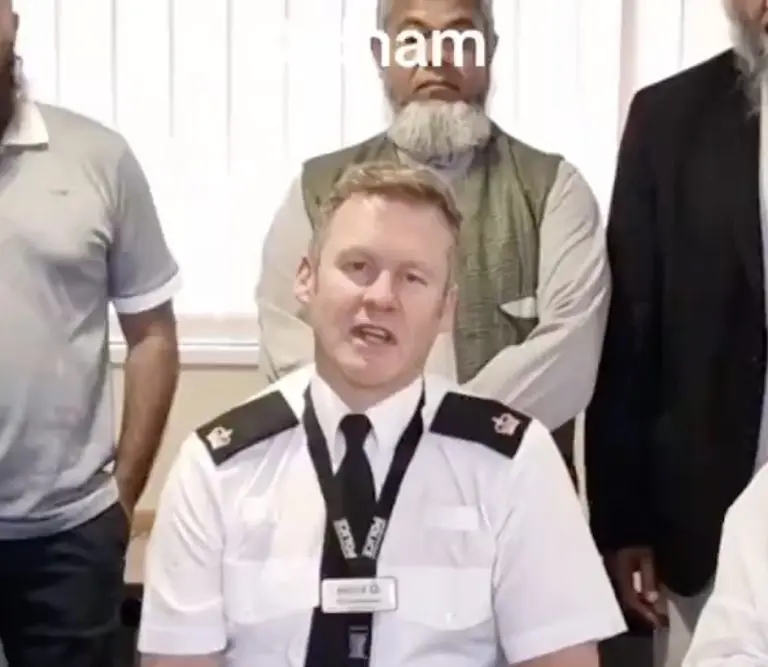La scène se passe à Oldham, ville du Comté du Grand Manchester. Un policier, surintendant en chef de la police locale, entouré de membres du Conseil des mosquées, s’adresse aux musulmans de la ville pour les rassurer. Il commence son message par « Salam aleykoum » comme nombre de policiers invités à calmer les communautés musulmanes sur Tik Tok et autres réseaux sociaux. Vraisemblablement tout ce petit monde sort d’une réunion du Conseil des mosquées d’Oldham, qui rassemble des dirigeants et membres de 35 mosquées d’Oldham… tous affolés à l’idée que des membres de l’EDL (“english defence league de Tommy Robinson, pourtant dissous depuis une dizaine d’années) puissent venir à Oldham…